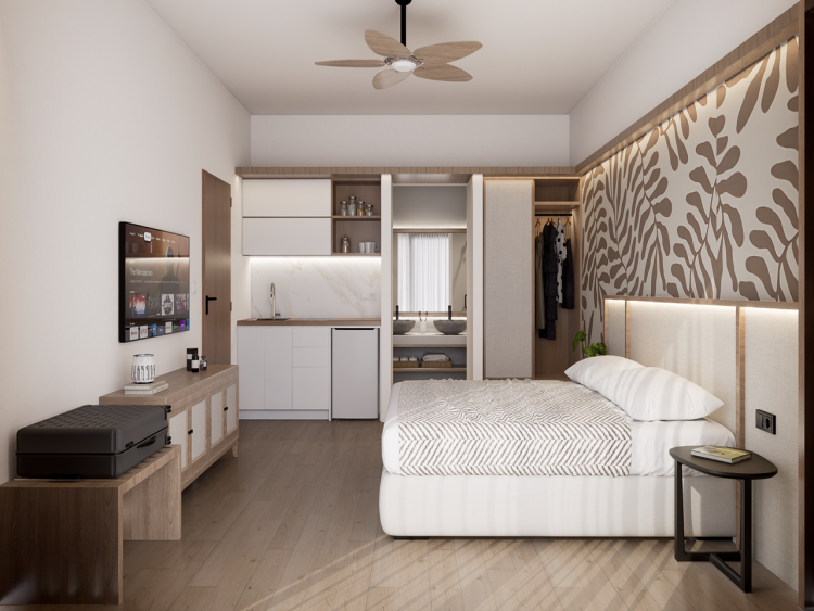 Alle appartementen zijn fris en modern ingericht, mét airco (dus altijd lekker slapen!). Je hebt een moderne badkamer, koelkast, tv en gratis wifi. En het mooiste: een eigen balkon of terras, perfect voor dat rustige moment in de avond als de kinderen slapen.